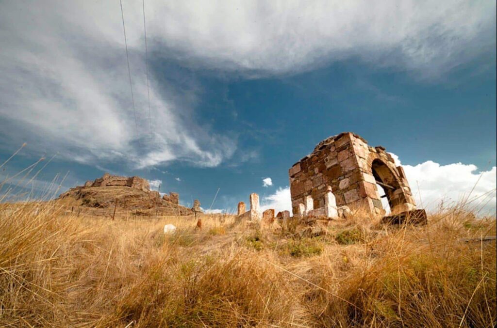 • Kalıntılar: Yüksek bir bölgede uzun sur duvarı, Kale Tepesi’nde yukarı şehir, güney ve kuzeyde aşağı şehir kalıntıları, ev temelleri ve horosan kaplı duvarlar bulunur. Keykavus Kalesi köyün kuzeybatısındadır.